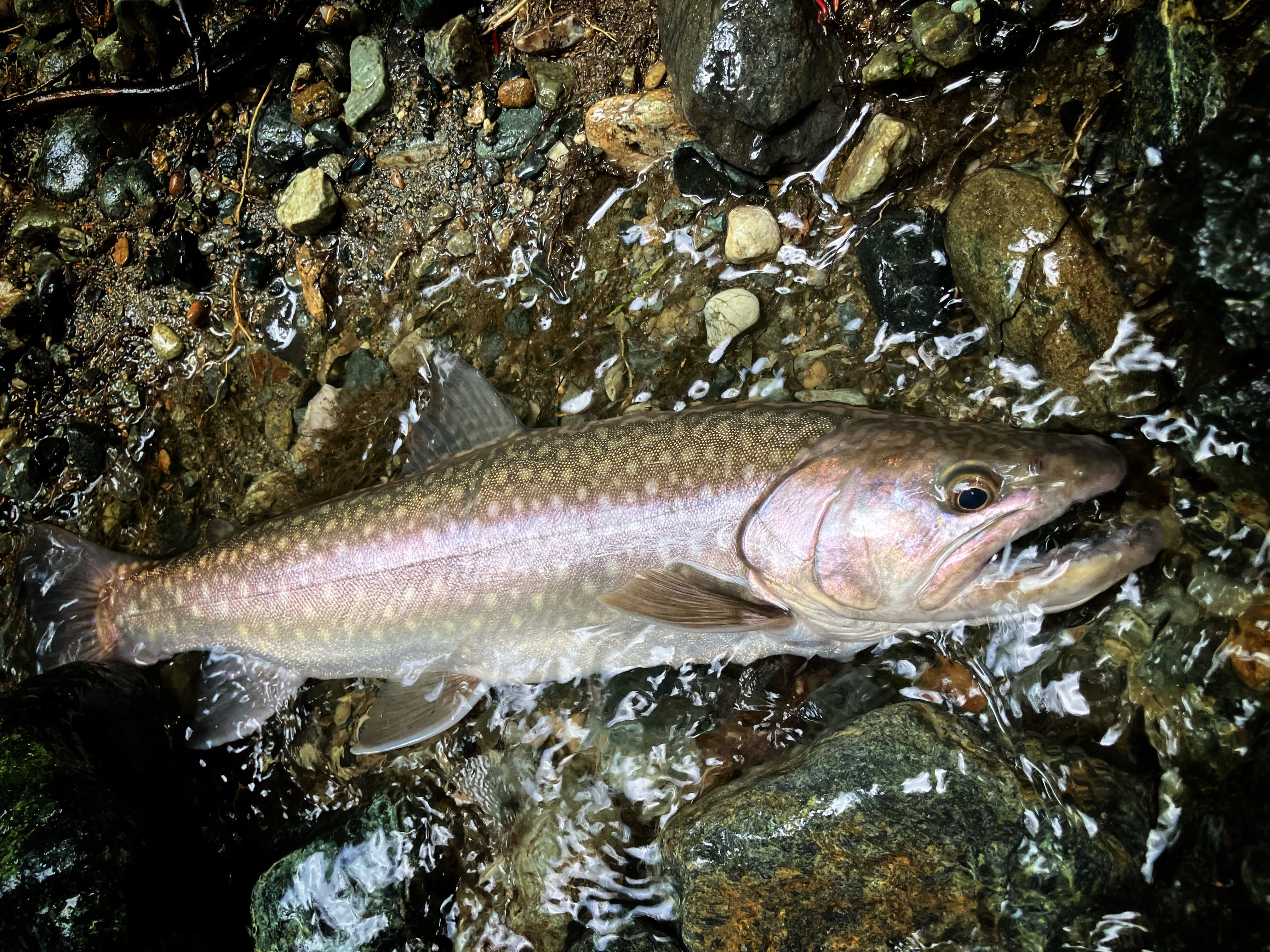 ヤマメをモチーフにしたワイヤーアート。 置いても良し、ぶら下げても良し、照らしても良しのトラウトオブジェです。 曲げられる素材を使用しているため、顔や口元、鰭などお好みのフォルムに自由自在に変形することが可能です。 サイズ 横幅:約17センチ 高さ:約6センチ 素材:スチール製ワイヤー