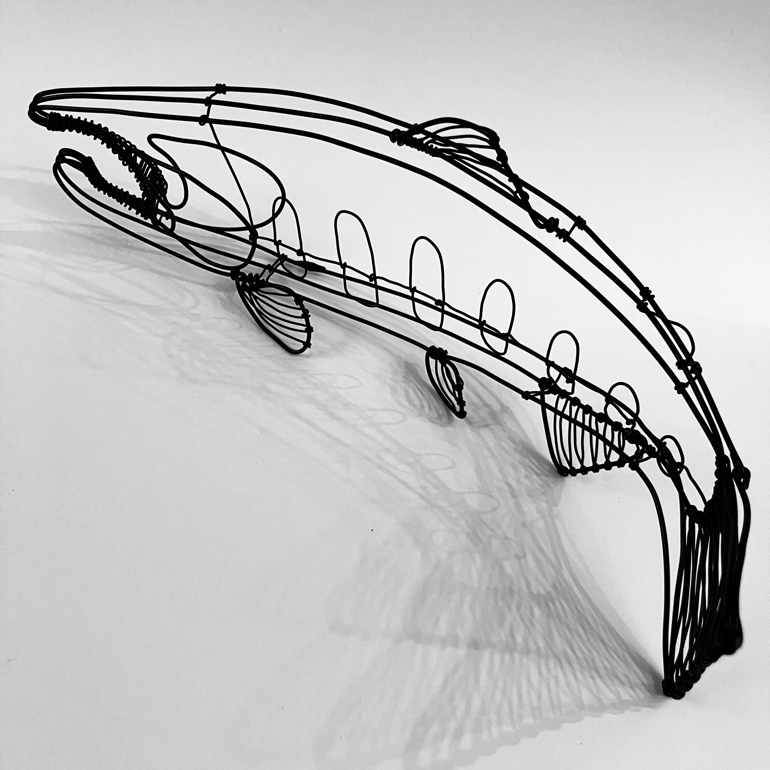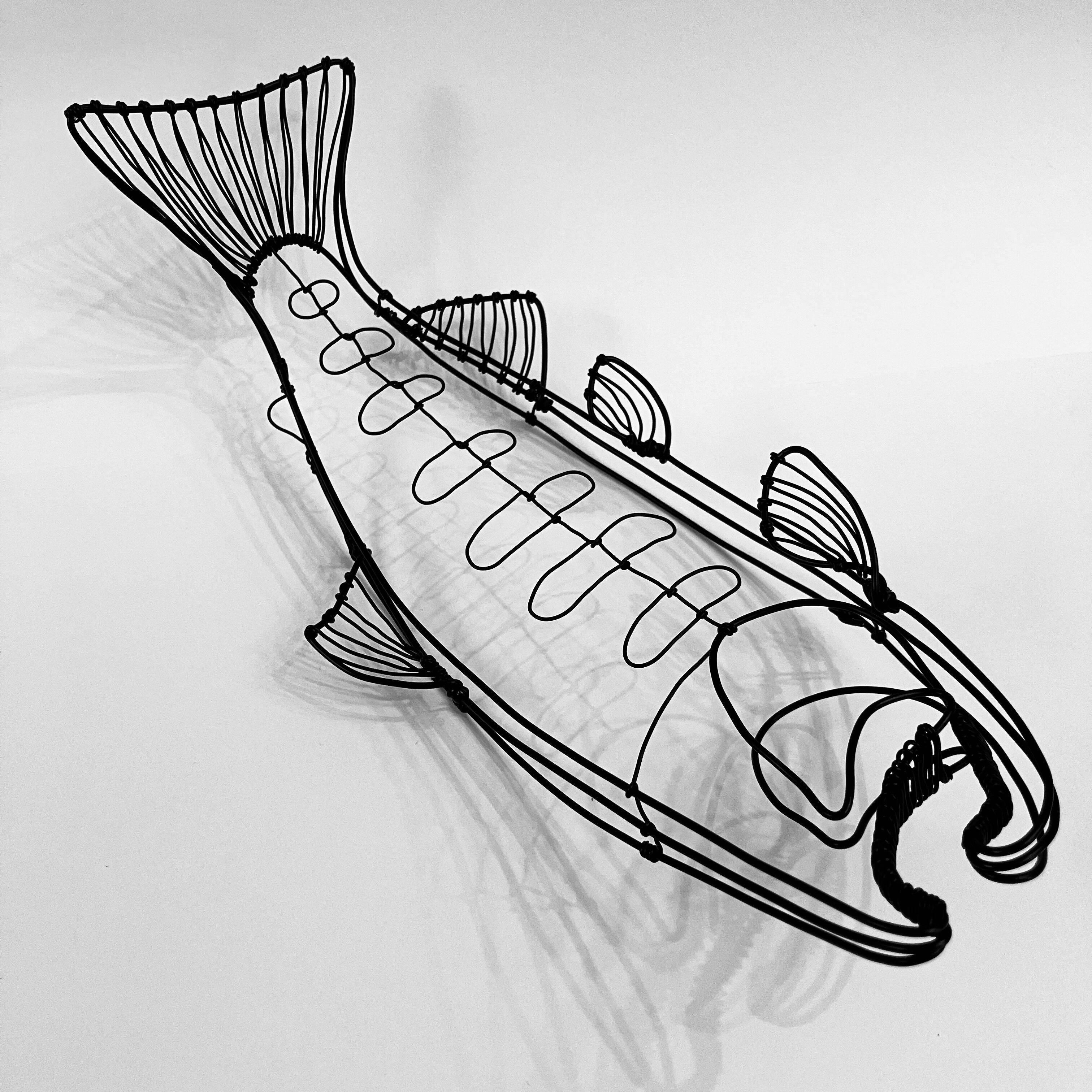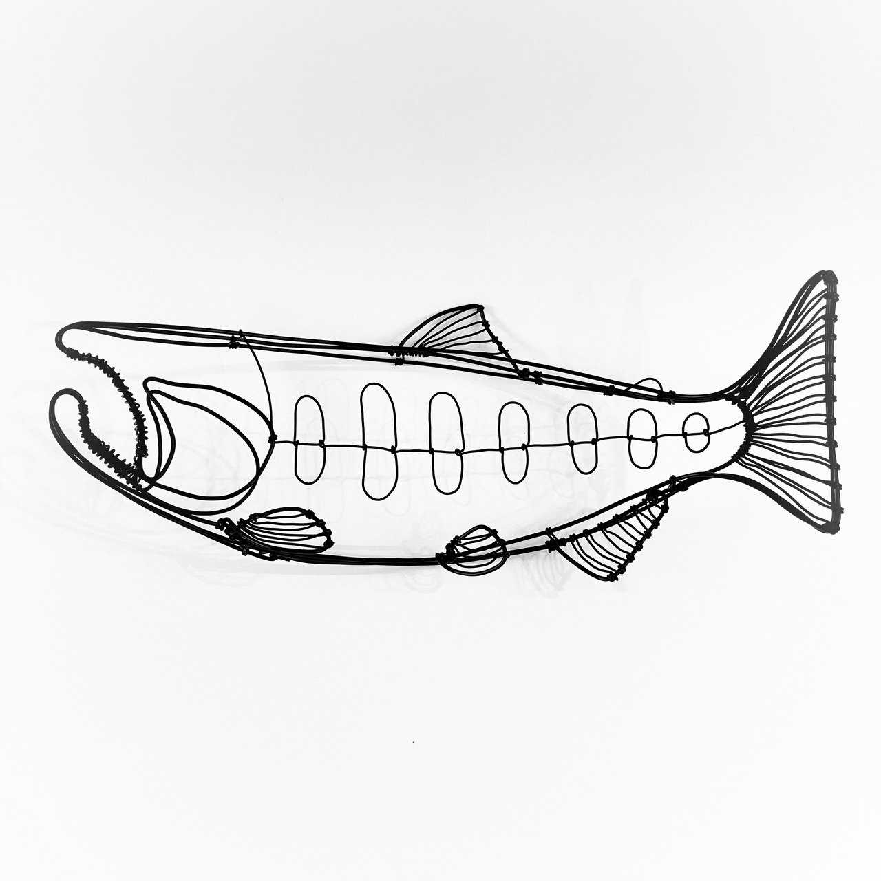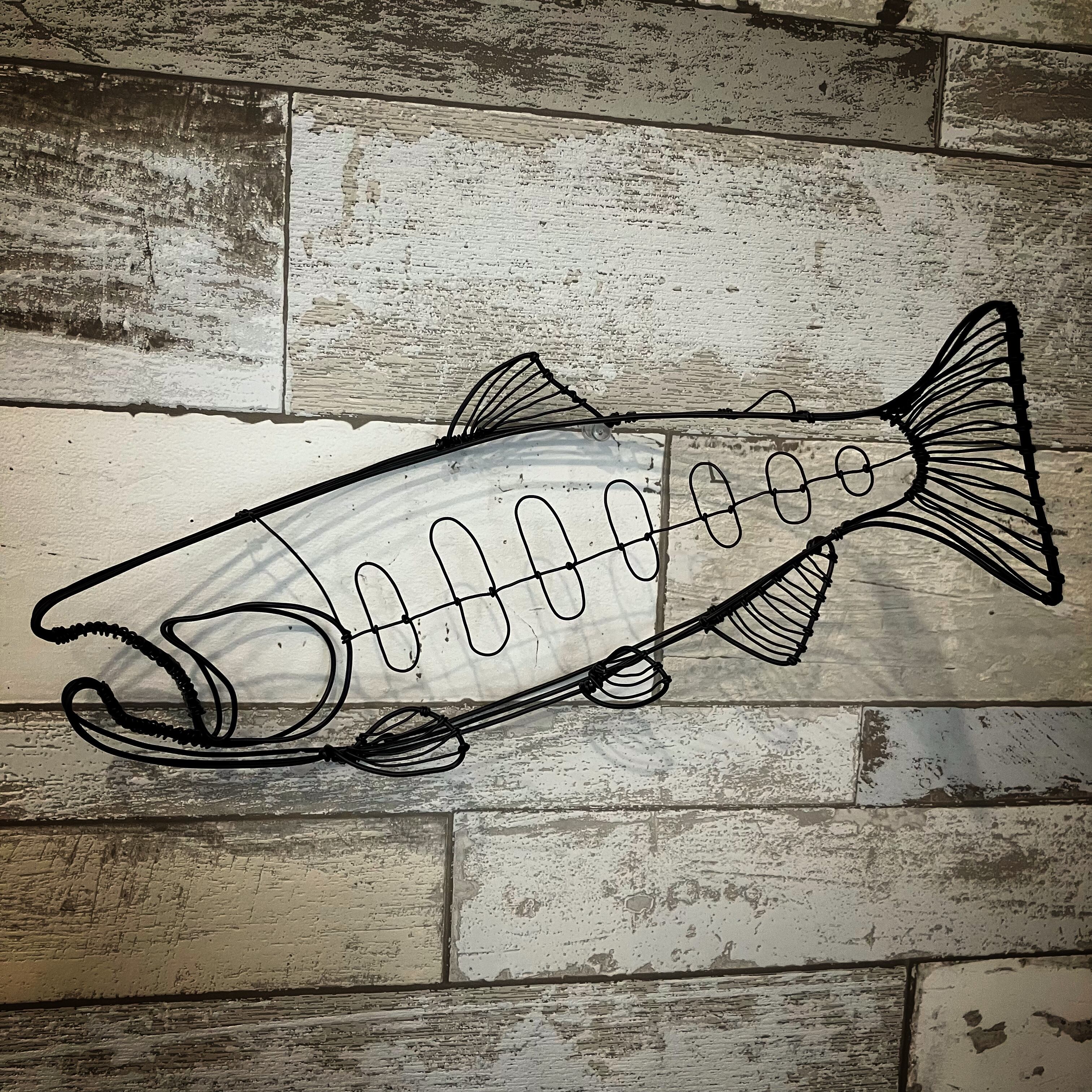 ヤマメをモチーフにしたワイヤーアート。